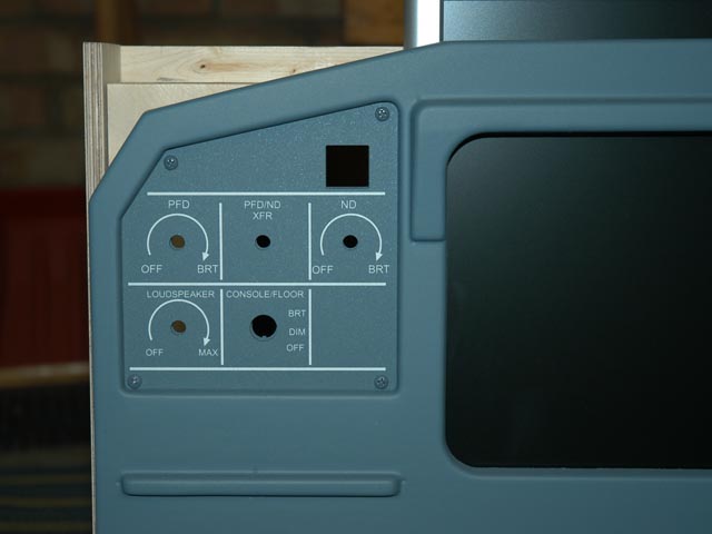 I was initially told that I would need 19" displays for the PFD/ND but these are too high meaning that the monitor not only projects up into the glare which is OK but not high enough to lose all of the excess. The monitor then projects down below the MIP which is why some cockpit pictures show and extended lower edge. I felt that it should be possible to use a 17" widescreen monitor for the PFD/ND and once I had the panels I could measure and confirm this. This solution avoids having screens that project below the MIP and the they are cheaper than 19". I bought two Hanns-G 17" widescreen monitors HW 173D from CCL (http://www.cclonline.com/) which have a viewable area of 361mm x 198mm. These are excellent value and performance for the task.