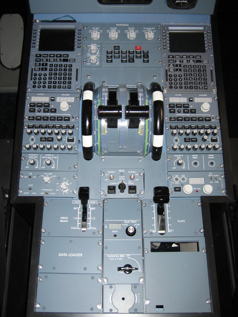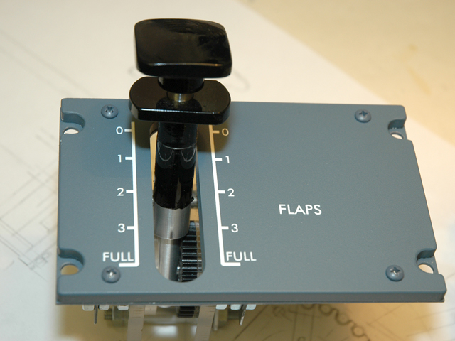 The back lit panels with the exception of the radio tuners were obtained from Flight Deck Solutions. At the time of purchase they were not supplying the radio tuners and these were bought separately from a Swiss sim builder. The power lever assembly is my own manufacture as are the flap and spoiler lever mechanisms.